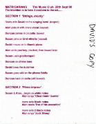 From what I can glean from Internet trawling, the Matricarians prefer performing seated on the floor amongst their toys, picking up the occasional guitar to add a more recognisable sound to their sonic collage. Having just experienced my first taste of Matricarianism, I can jolly well understand their approach. It’s certainly a challenge to remain vertical while these bubbling bleeps, whooshes, and “aaahhhhs” wash over you. Th e “set guide” for their first live performance (2008 at Aberdeen’s Music Club) is reproduced below and gives you an idea of what to expect, although it’s always best to unexpect the expected and let the Matricarians just happen. You will be richly rewarded. [As far as I can make out, “matricaria” is related to chamomile, a plant well-known for its therapeutic and relaxation-inducing properties. If your chemist is out of it, Rainthinking will more than suffice in easing the day’s stressful annoyances and leave you in a better physical and spiritual place than before you began.]